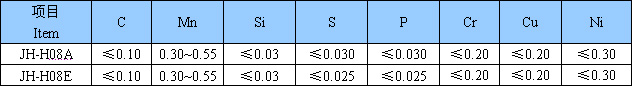 JH-H08E是鍍銅的低碳結(jié)構(gòu)鋼埋弧焊絲,是普通鋼結(jié)構(gòu)焊接用量焊絲之一。 用途:配合JH-SJ301、JH-SJ501,JH-SJ50M等燒結(jié)焊劑和其他品牌的熔煉焊劑,主要用于焊接低碳鋼及某些低合金鋼結(jié)構(gòu)和壓力容器,橋梁、管線等埋弧焊接。